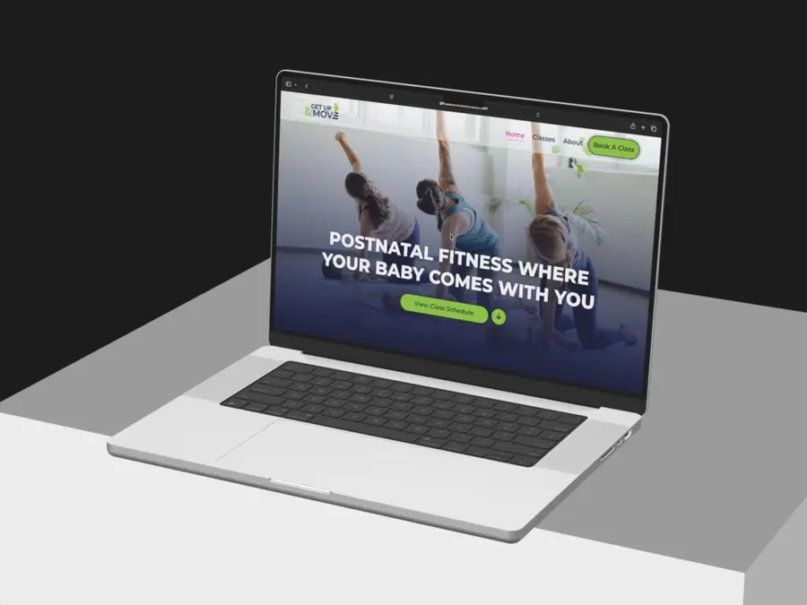 Get Up And Move With Caitlin offers postnatal fitness classes designed for new mothers recovering from birth. We built a service website that communicates the baby-inclusive class format, highlights the community-driven approach, and walks visitors through the benefits of postpartum-specific training. The site features class scheduling and booking integration, seasonal bundle promotions with countdown timers, and clear calls to action that convert visitors into booked participants.